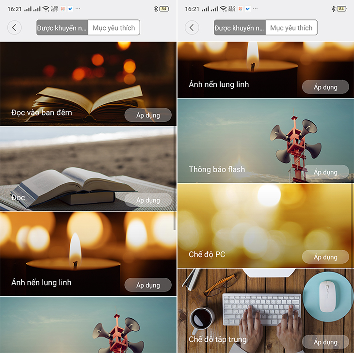 Ngoài các chế độ cơ bản trên, bạn có thể truy cập vào Mục yêu thích để khám phá thêm nhiều chế độ sáng hữu ích khác như: chế độ đọc vào ban đêm, ánh nến lung linh, thông báo flash,...