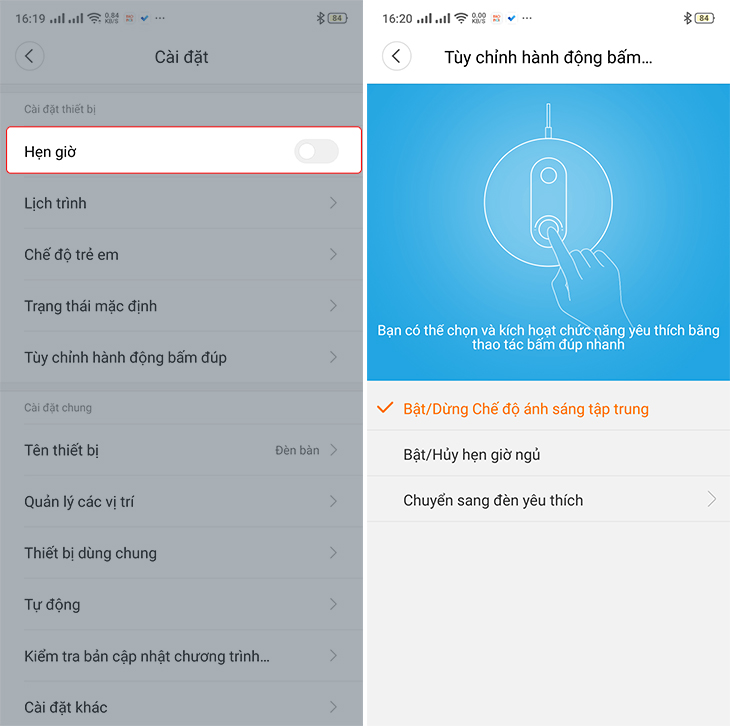 Các tính năng nâng cao khác trên đèn bàn Xiaomi
