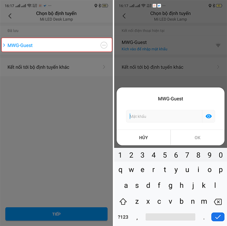 Lưu ý: Bạn phải thực hiện bước này là vì đèn bàn Mi Led Desk Lamp sẽ lấy thông tin trên để truy cập vào mạng Wi-Fi, từ đó bạn mới điều khiển được thiết bị này từ xa.