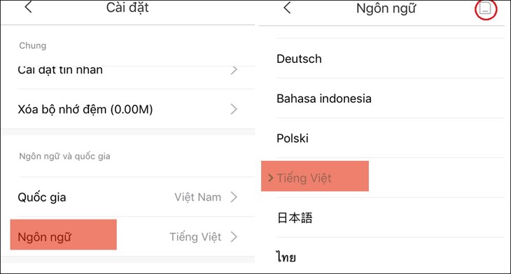 Bước 2: Chọn Ngôn ngữ > Tiếng Việt.