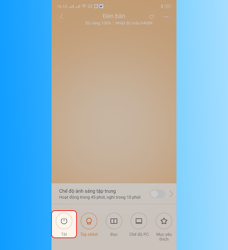 Để có thể bật/tắt đèn bàn, bạn nhấn vào nút bật/tắt ở phía bên dưới góc trái màn hình.