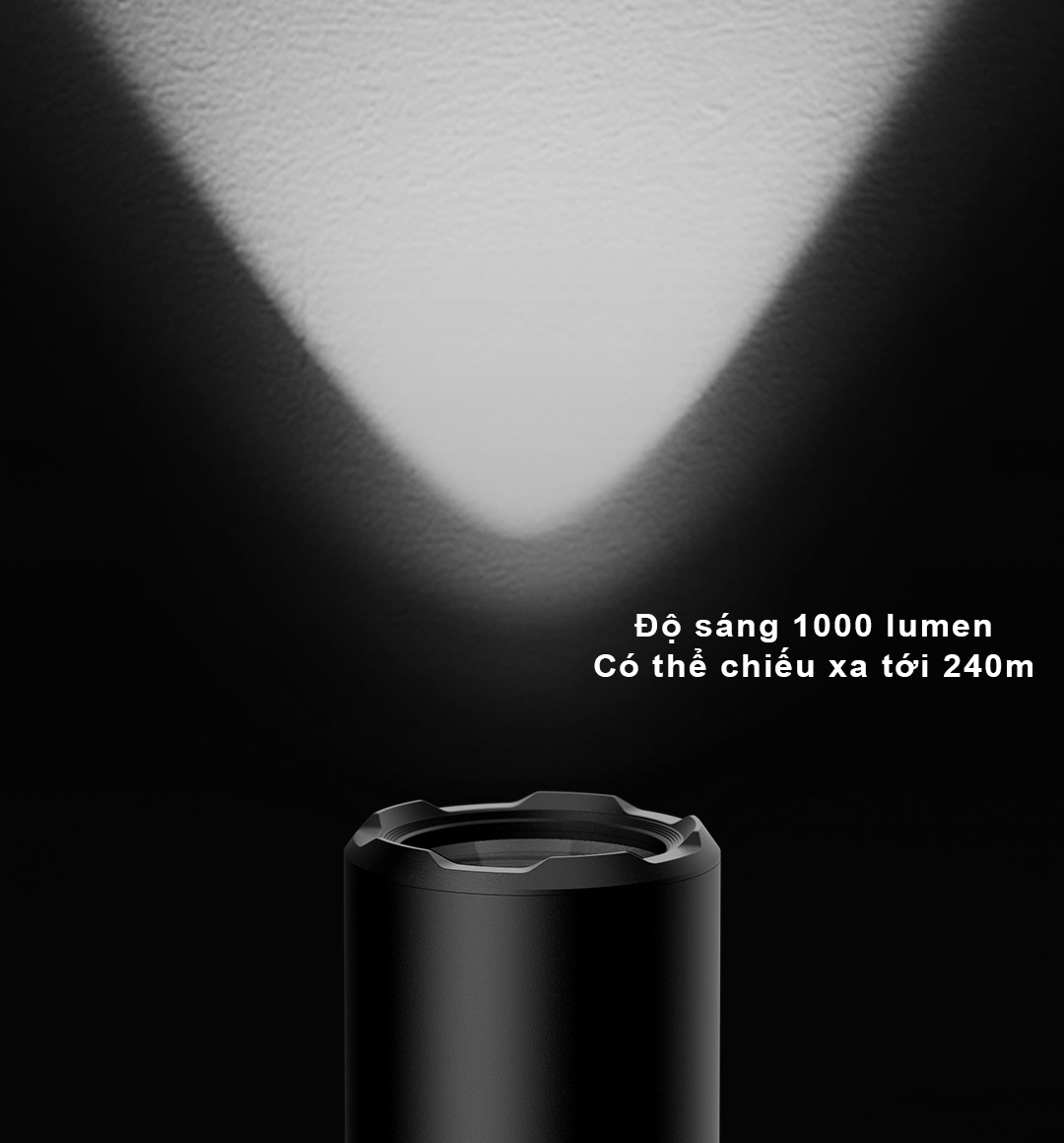 Độ sáng mạnh mẽ 1000 lumen, chiếu xa đến 240m