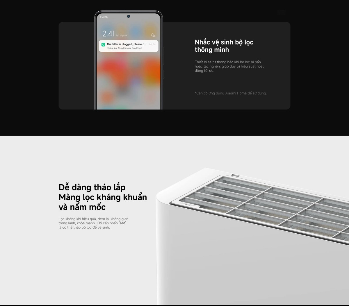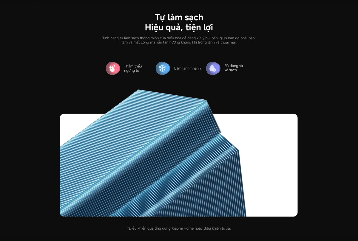 ASC-12WO/N1C5-VN được trang bị hệ thống tự làm sạch dàn lạnh tiện lợi, quy trình hoạt động dựa trên chu trình đông lạnh, tan băng và sấy khô, giúp loại bỏ triệt để bụi bẩn, vi khuẩn, nấm mốc tích tụ bên trong. Nhờ vậy, máy luôn duy trì được hiệu suất làm lạnh tối ưu, đảm bảo không khí thổi ra luôn trong lành, sạch sẽ. Để việc bảo trì trở nên đơn giản hơn, bạn sẽ nhận được nhắc nhở vệ sinh bộ lọc ngay trên ứng dụng Xiaomi Home. Bộ lọc kháng khuẩn của máy có khả năng ngăn chặn bụi mịn hay các tác nhân gây hại, mang lại bầu không khí an toàn cho sức khỏe. Bạn cũng có thể dễ dàng tháo rời bộ lọc để vệ sinh định kỳ.