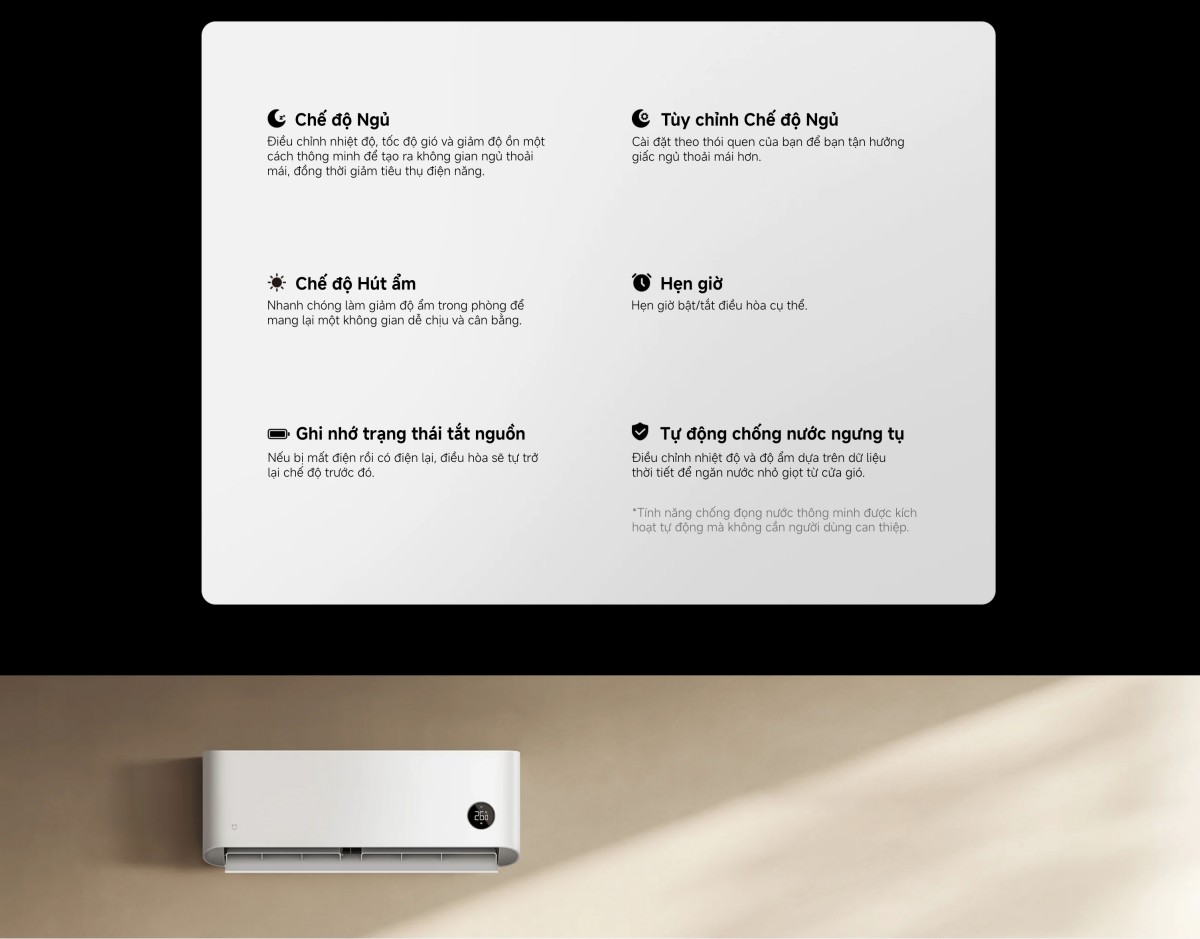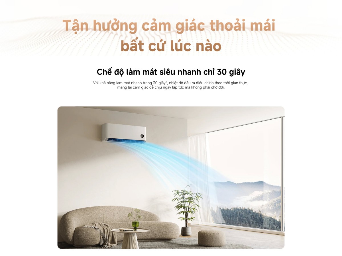 Công suất 1.5 HP, điều hòa Xiaomi Mijia có khả năng làm lạnh mạnh mẽ, nhanh chóng mang đến sự thoải mái tức thì cho không gian của bạn. Điểm nổi bật là chế độ Turbo, cho phép máy đạt nhiệt độ mong muốn chỉ trong vòng 30 giây. Đây là tính năng vô cùng hữu ích vào những ngày nắng nóng đỉnh điểm, giúp bạn tận hưởng ngay lập tức luồng không khí mát lạnh, dễ chịu mà không cần chờ đợi.