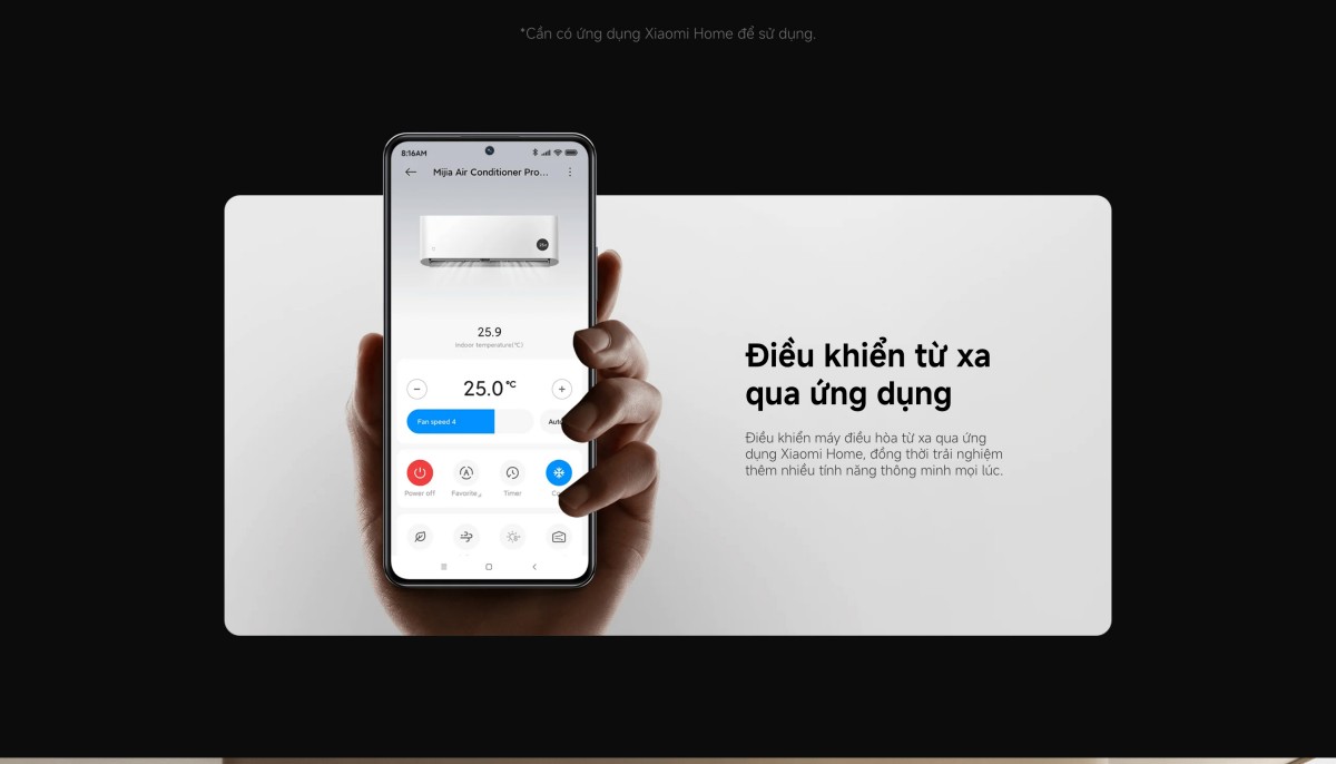 Sản phẩm hỗ trợ ứng dụng Xiaomi Home, có thể điều khiển máy lạnh mọi lúc, mọi nơi ngay trên chiếc điện thoại thông minh của mình. Bạn có thể dễ dàng bật/tắt máy, điều chỉnh nhiệt độ, hay cài đặt hẹn giờ từ xa trước khi về nhà, đảm bảo không gian luôn mát mẻ ngay khi bạn bước vào. Ngoài ra, điều hòa 1 chiều Xiaomi ASC-12WO/N1C5-VN còn có khả năng đồng bộ hóa liền mạch với các thiết bị khác trong hệ sinh thái Xiaomi, cho phép bạn trải nghiệm theo nhu cầu riêng. Đặc biệt, bạn có thể điều khiển máy lạnh bằng giọng nói thông qua Google Assistant và Amazon Alexa vô cùng tiện lợi, hiện đại.