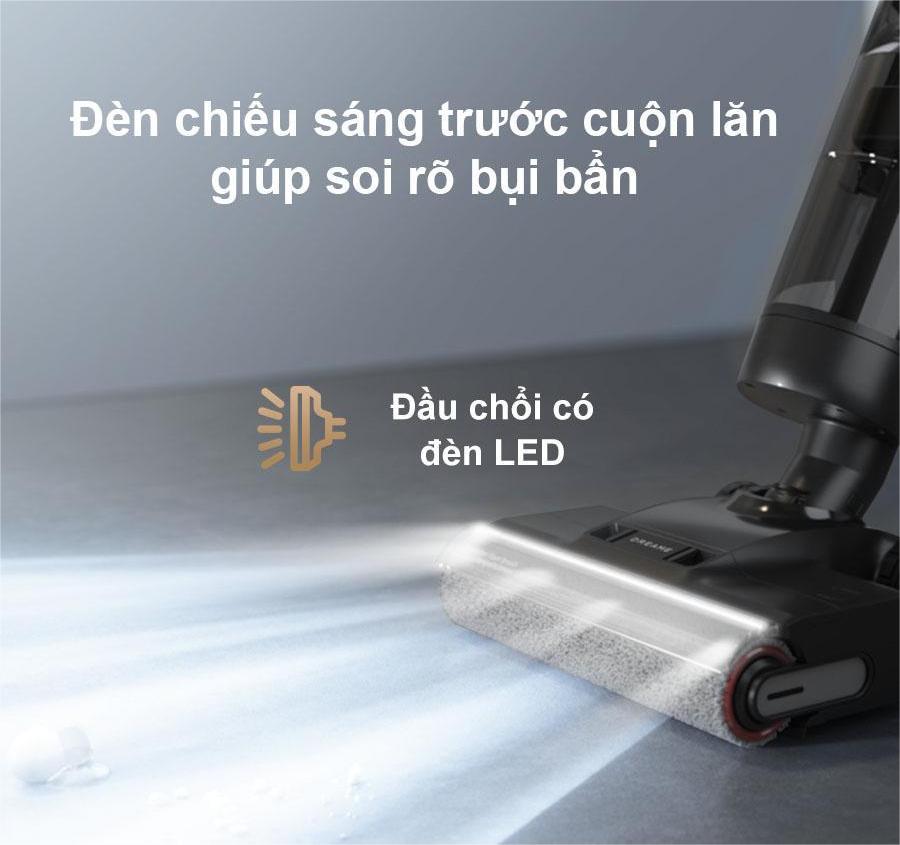 Không gian dưới gầm giường, sau tủ hay các khu vực tối thường là nơi tích tụ bụi bẩn. Hiểu điều đó, Dreame H13 Pro được tích hợp đèn LED ngay trên đầu cuộn lăn, giúp người dùng dễ dàng phát hiện bụi bẩn và vệ sinh sạch sẽ, kể cả trong điều kiện thiếu sáng.