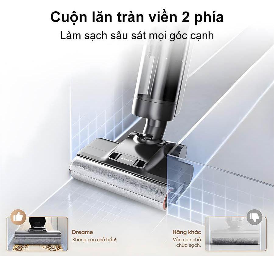 Dreame H13 Pro sở hữu thiết kế cuộn lăn tràn viền ở cả hai phía, cho phép tiếp cận sát tường và các mép nội thất – nơi mà các loại máy hút bụi thông thường thường bỏ sót. Nhờ vào khả năng xoay linh hoạt và cấu trúc cải tiến, mọi ngóc ngách trong nhà đều được làm sạch toàn diện, kể cả khu vực khó tiếp cận như chân tủ, gầm bàn hay cạnh ghế sofa.