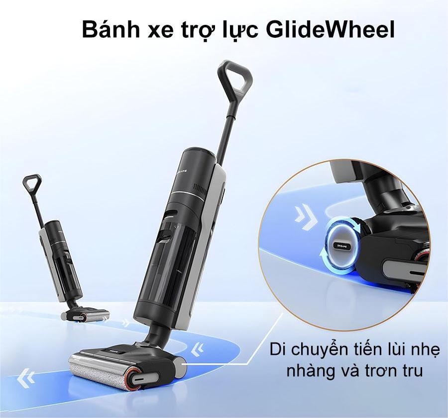 Với bánh xe trợ lực GlideWheel, Dreame H13 Pro dễ dàng lướt đi trên mọi mặt sàn, kể cả sàn gồ ghề hoặc có thảm. Việc di chuyển nhẹ nhàng giúp người dùng không mất sức và điều khiển máy linh hoạt hơn, đặc biệt hữu ích với người lớn tuổi.