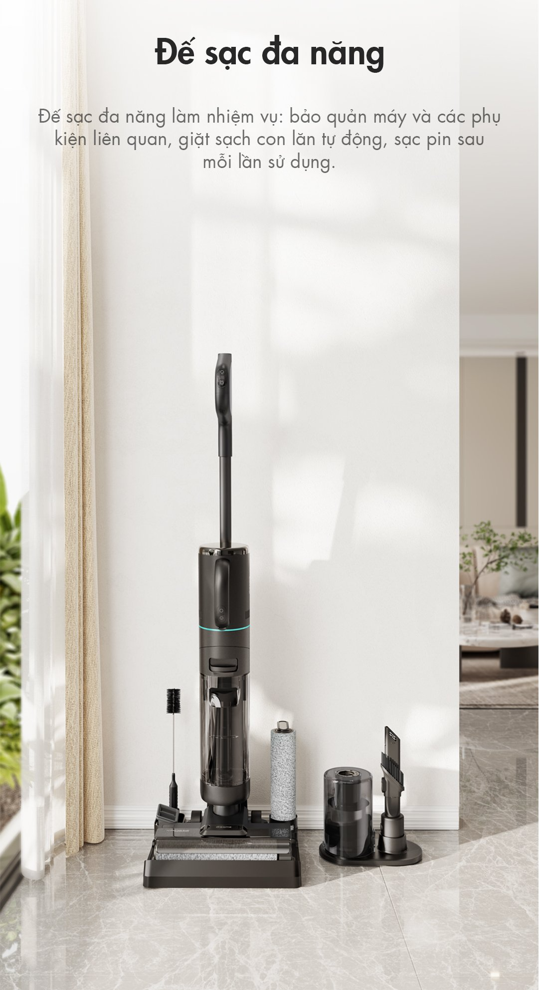 Máy Lau Sàn Hút Bụi Dreame M12 Combo là một thiết bị đa năng với khả năng hút bụi khô, hút bụi ướt và lau nhà trong cùng một lần thao tác, mang lại sự tiện lợi tối đa cho người sử dụng. Đặc biệt, máy còn được tích hợp công nghệ khử trùng bằng nước điện phân, giúp loại bỏ vi khuẩn và mùi hôi hiệu quả mà không cần dùng đến hóa chất. Nhờ sự kết hợp giữa lực hút mạnh mẽ và khả năng xử lý linh hoạt các loại bụi bẩn.