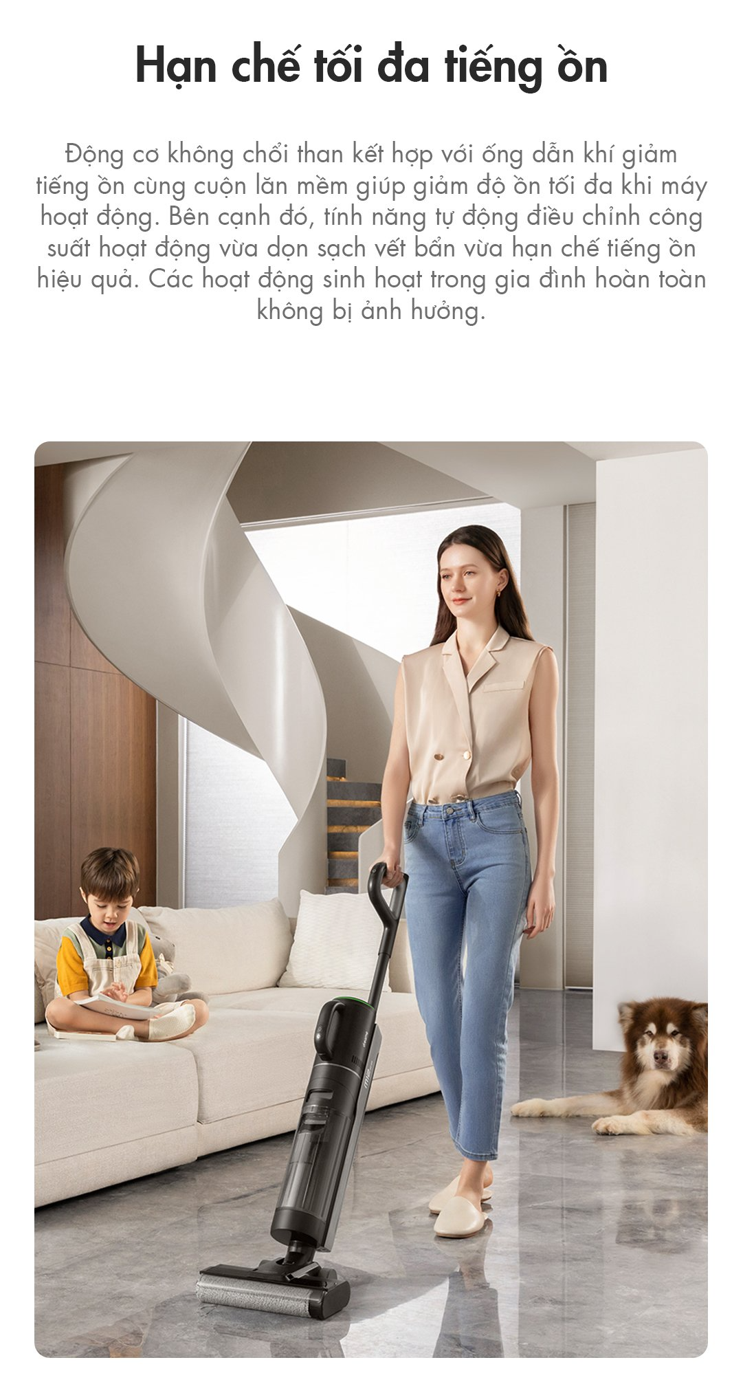Đặc biệt, bàn chải được thiết kế với lực kéo nhẹ về phía trước, hỗ trợ người dùng di chuyển máy một cách dễ dàng và trơn tru hơn, gần như không cần dùng nhiều lực. Tính năng này giúp tối ưu trải nghiệm sử dụng, tiết kiệm sức lực đáng kể trong quá trình làm sạch, đặc biệt hữu ích với người lớn tuổi hoặc những ai thường xuyên phải dọn dẹp nhà cửa. Dreame H13 Pro nhờ đó không chỉ mạnh mẽ mà còn cực kỳ thân thiện với người dùng trong từng thao tác