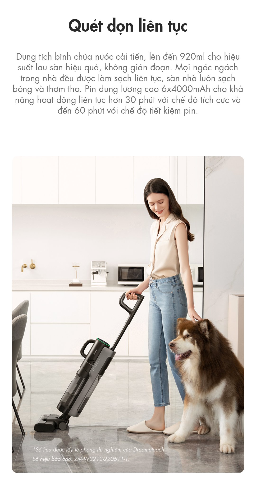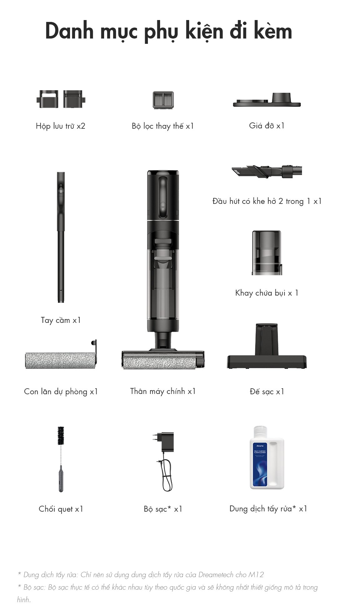 Dreame M12 Combo dễ dàng làm sạch mọi vết bẩn, từ bụi khô thường ngày đến các vết dính cứng đầu như thức ăn rơi vãi, nước đổ hay dấu chân bùn đất trên sàn cứng. Đây thực sự là giải pháp vệ sinh toàn diện cho những gia đình hiện đại, mong muốn tiết kiệm thời gian nhưng vẫn đảm bảo ngôi nhà luôn sạch sẽ, an toàn và tinh tươm.