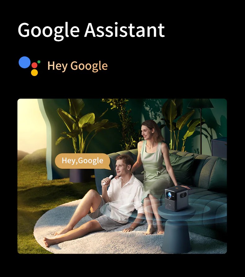 Máy chiếu Wanbo Mozart 1 Pro không chỉ là một chiếc máy chiếu, mà còn là người bạn đồng hành công nghệ với Google Assistant tích hợp. Chỉ bằng giọng nói, bạn có thể dễ dàng điều khiển máy chiếu, tìm kiếm nội dung yêu thích, quản lý lịch trình hoặc kiểm soát các thiết bị thông minh trong nhà — tất cả mà không cần chạm tới bàn phím hay điều khiển từ xa. Trải nghiệm tiện lợi và hiện đại hơn bao giờ hết!