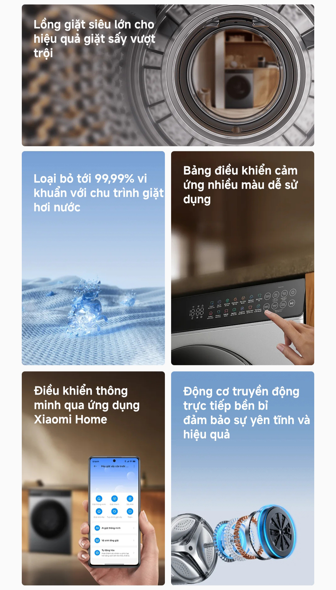 Không chỉ giặt sạch, Máy giặt sấy Xiaomi còn bảo vệ sức khỏe toàn diện.