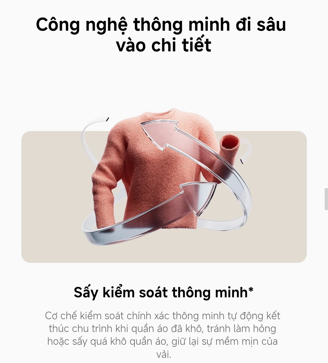 Công nghệ kiểm soát thông minh – Chuẩn từng chi tiếtKhông còn cảnh quần áo bị sấy quá khô hay ẩm ướt chưa đạt yêu cầu.