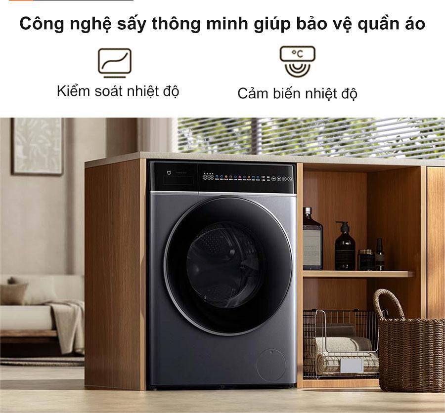Máy giặt sấy Xiaomi MJ302 Pro được trang bị hệ thống cảm biến chính xác cao, có khả năng kiểm soát nhiệt độ sấy trong khoảng 55°C – 60°C, giúp bảo vệ quần áo khỏi tình trạng bị khô cứng, biến dạng hay hư tổn sợi vải. Khi quần áo đạt đến độ khô vừa đủ, máy sẽ tự động ngắt chế độ sấy, giữ cho quần áo luôn mềm mại, bền màu và đảm bảo độ bền lâu dài cho từng loại vải.