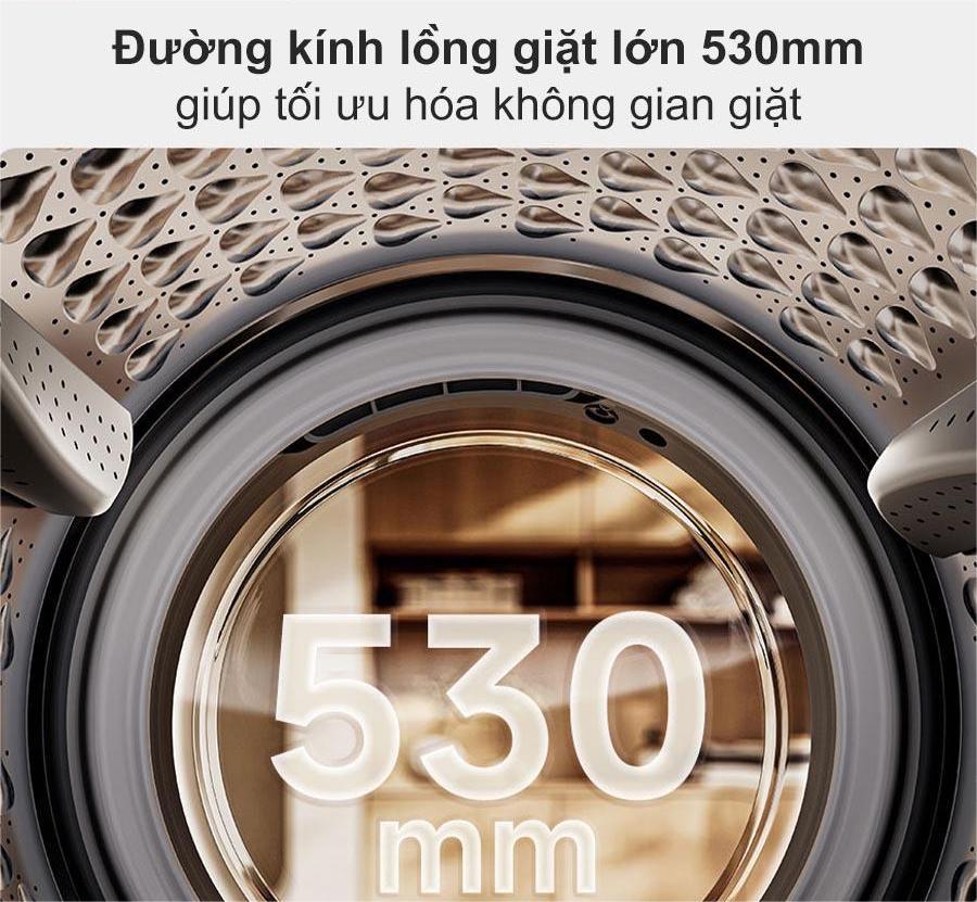 Lồng giặt lớn 530mm – Giảm nhăn, giặt sâu