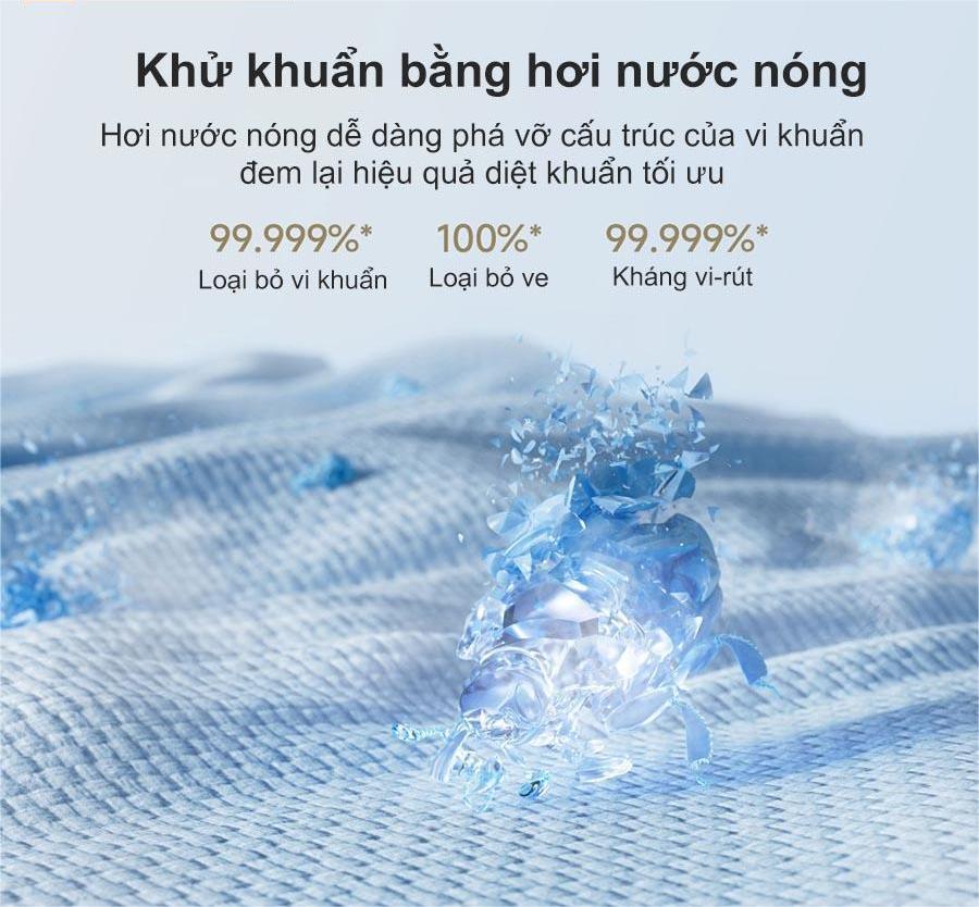 Đặc biệt, tính năng “Khử trùng” của máy có thể hoạt động độc lập hoặc kết hợp với nhiều chương trình giặt khác nhau, mang lại sự linh hoạt và hiệu quả tối ưu trong việc bảo vệ sức khỏe cho toàn bộ thành viên trong gia đình. Nhờ đó, bạn hoàn toàn yên tâm khi sử dụng máy cho cả những bộ quần áo nhạy cảm như đồ trẻ em hoặc đồ lót, giúp gia đình luôn được chăm sóc một cách toàn diện nhất.