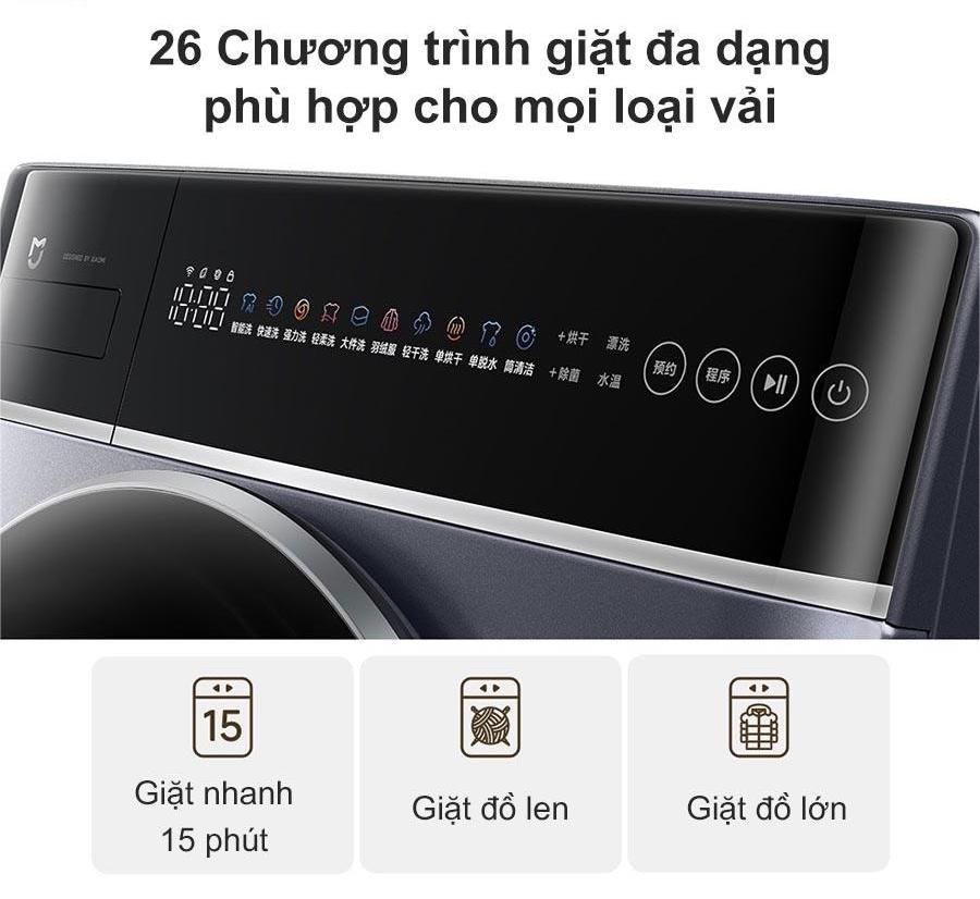 Máy giặt sấy Xiaomi MJ302 Pro - Giặt 12kg sấy 9kg trang bị đến 26 chương trình giặt đa dạng, đáp ứng nhu cầu chăm sóc quần áo của cả gia đình một cách tối ưu. Từ những chất liệu đặc biệt như đồ len mềm mại, lụa mỏng manh, đến đồ lông vũ giữ ấm, cũng như những món đồ nhạy cảm như quần áo trẻ em hay đồ lót, người dùng đều có thể dễ dàng lựa chọn chế độ giặt phù hợp nhất.