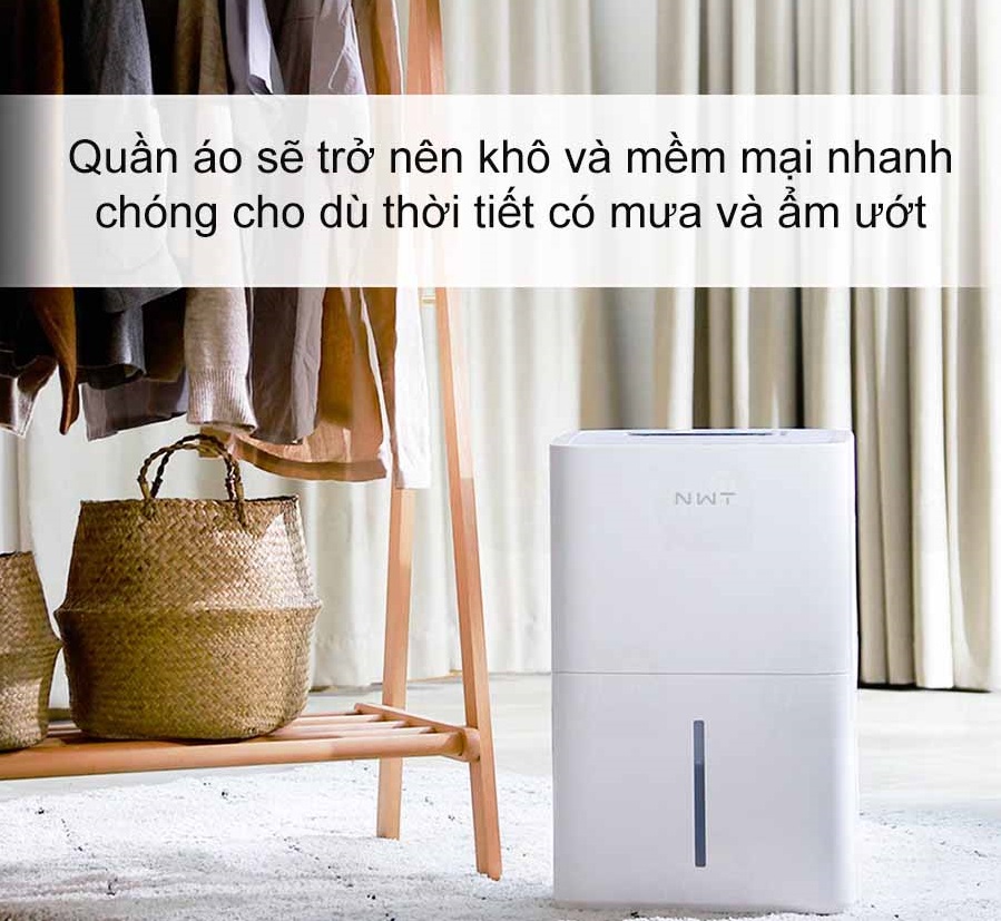Máy hút ẩm New Widetech 30L không chỉ giúp kiểm soát độ ẩm mà còn hỗ trợ làm khô quần áo nhanh chóng, ngay cả trong những ngày mưa nồm ẩm ướt. Với công suất hút ẩm mạnh mẽ, máy giúp loại bỏ hơi ẩm trong không khí, ngăn ngừa vi khuẩn và nấm mốc phát triển trên quần áo. Nhờ đó, trang phục của bạn luôn khô ráo, mềm mại, không còn mùi ẩm mốc khó chịu, mang lại sự thoải mái và tiện lợi tối đa cho gia đình.