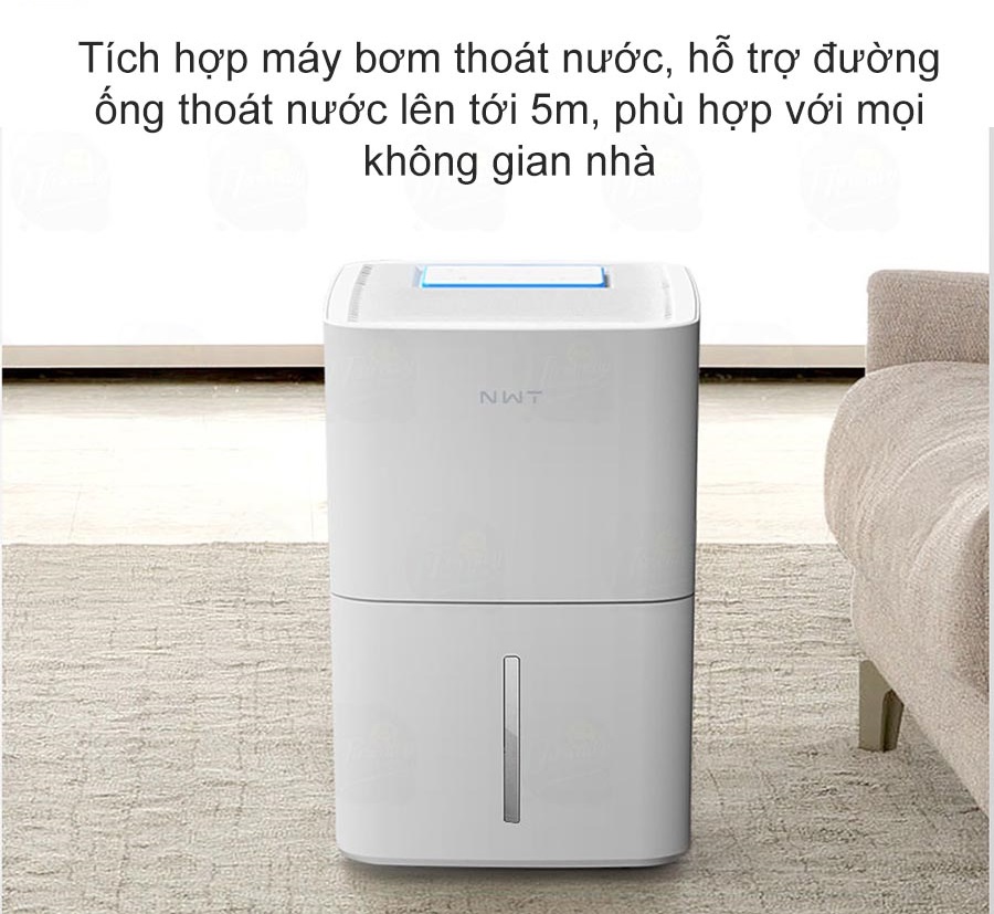 Máy hút ẩm New Widetech 30L tích hợp máy bơm thoát nước, hỗ trợ đường ống dài đến 5m, giúp quá trình hút ẩm diễn ra hiệu quả, linh hoạt và phù hợp với mọi không gian trong nhà.