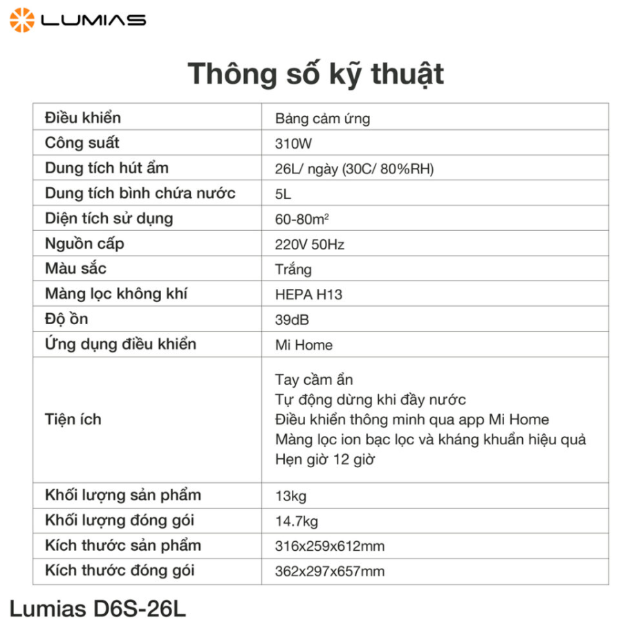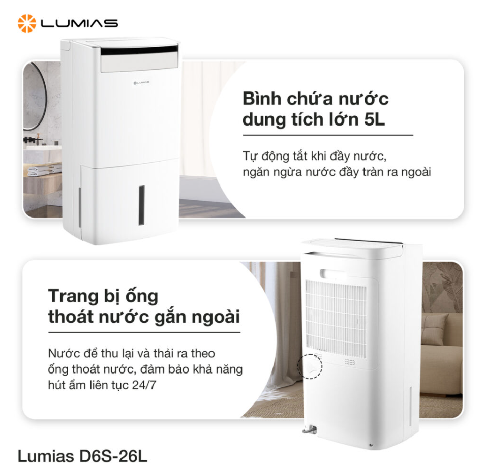 máy hút ẩm công suất lớn, bền bỉ và thông minh, Lumias D6S-26L chính là giải pháp tối ưu dành cho bạn.