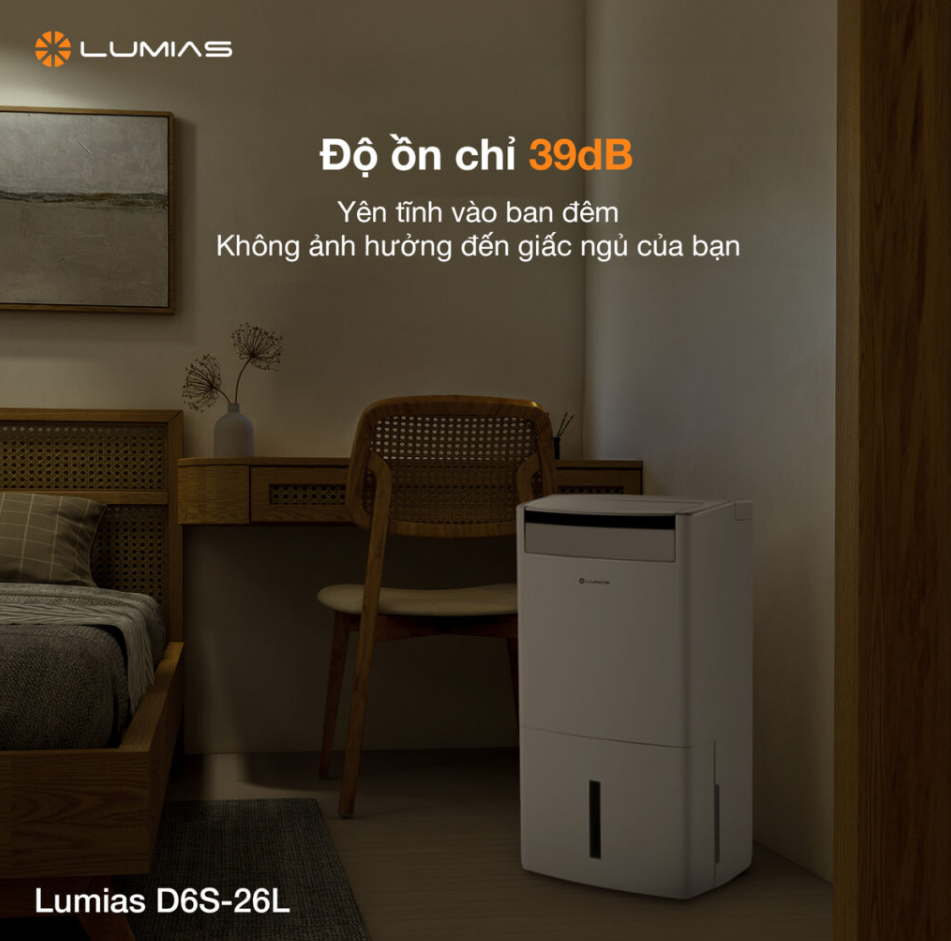 Máy hút ẩm Lumias D6S-26L hoạt động siêu yên tĩnh với