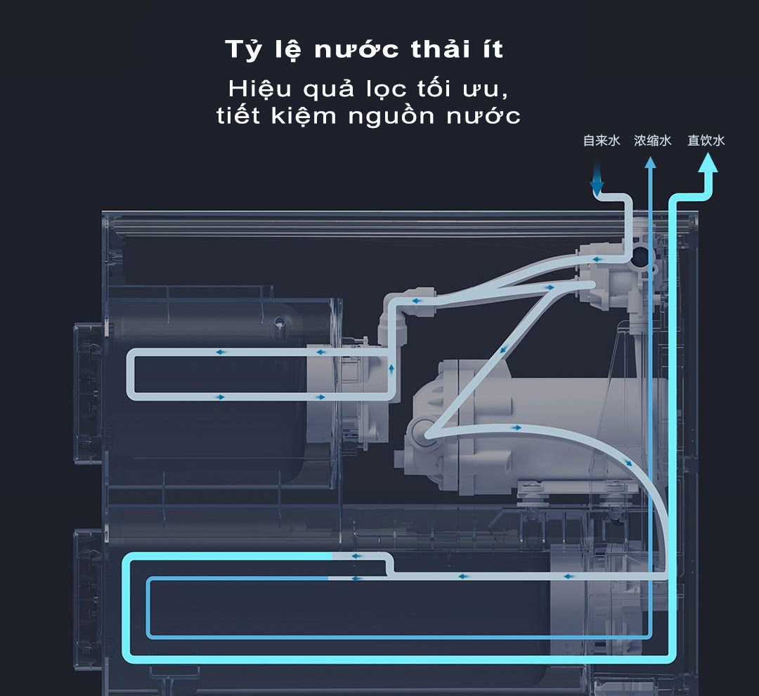 Điểm đặc biệt nổi bật của Máy lọc nước Xiaomi H600G MR642-B chính là tỷ lệ nước tinh khiết/nước thải đạt 2:1. Điều này có nghĩa là với mỗi 2 cốc nước sạch được lọc ra, máy chỉ tạo ra 1 cốc nước thải — một con số ấn tượng, giúp tiết kiệm nước hiệu quả hơn rất nhiều so với các dòng máy lọc truyền thống trên thị trường.