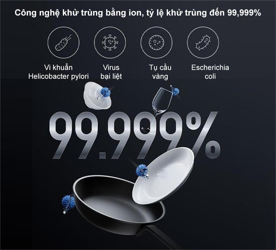 Khử trùng 99,999% vi khuẩn bằng ion và nhiệt độ cao