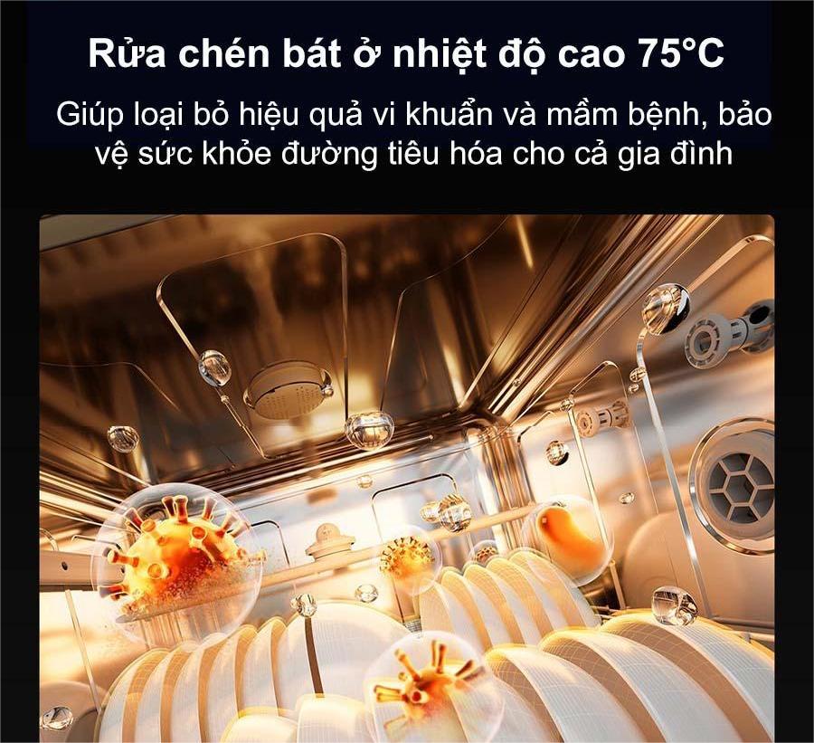 Việc rửa chén bát bằng nước nóng lên đến 75 độ C trên Máy rửa bát Xiaomi S2 - 13 bộ - 2025 không chỉ đảm bảo loại bỏ hoàn toàn các vi khuẩn gây hại bám trên bề mặt bát đĩa mà còn đóng vai trò quan trọng trong việc bảo vệ sức khỏe cả gia đình.