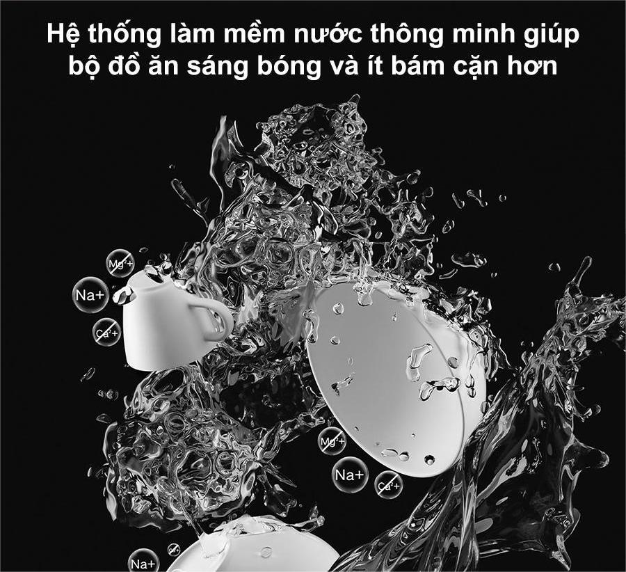 Bên cạnh đó, việc làm mềm nước cũng góp phần quan trọng trong việc hạn chế hiện tượng đóng cặn khoáng trong khoang máy và trên bề mặt bát đĩa, giúp bảo vệ độ bền của máy và duy trì chất lượng vệ sinh của dụng cụ nhà bếp. Nhờ vậy, mỗi lần rửa không chỉ sạch bóng mà còn giữ được độ mới lâu dài, mang lại sự an tâm tuyệt đối cho người dùng trong suốt quá trình sử dụng.