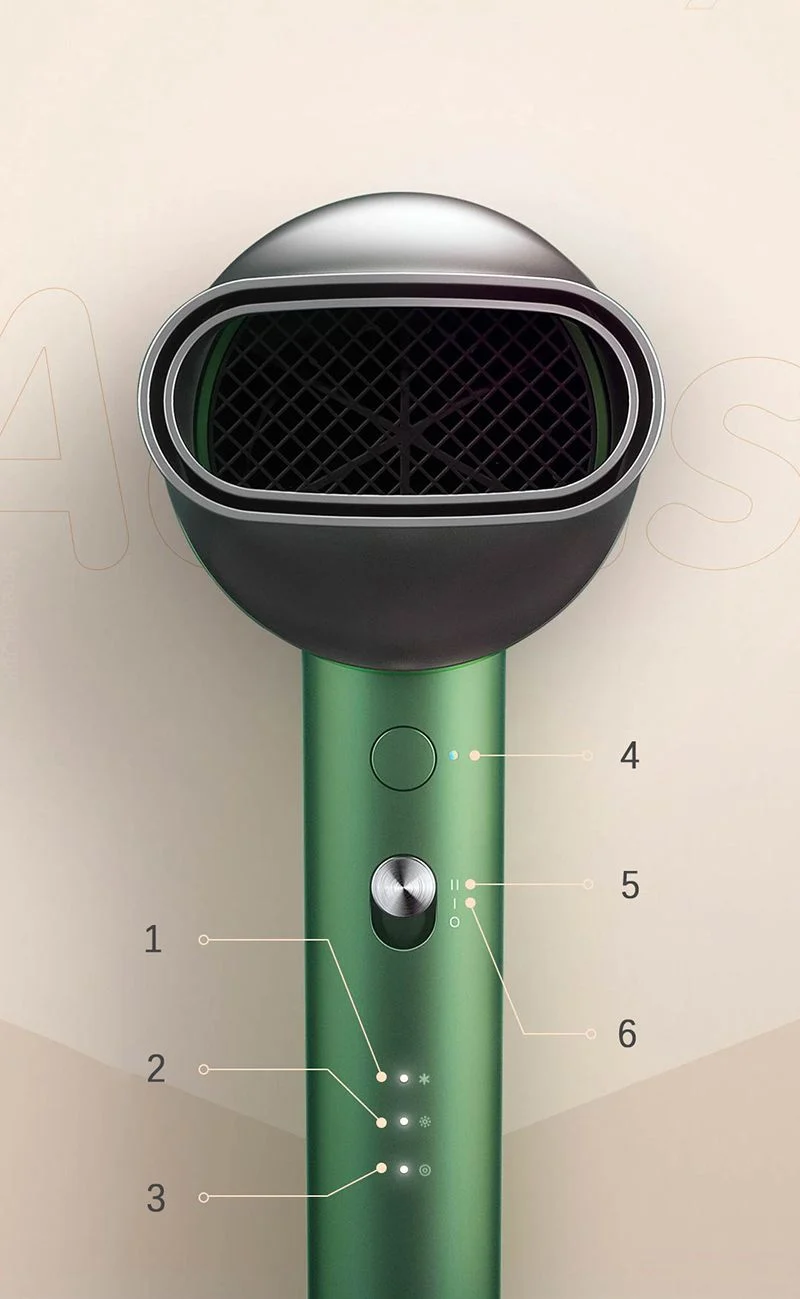 Máy Sấy Tóc Mijia ShowSee A5 được trang bị cảm biến nhiệt độ thông minh NTC, cho khả năng kiểm soát và điều chỉnh nhiệt độ một cách chính xác, giúp duy trì mức nhiệt ổn định quanh 55°C – mức nhiệt lý tưởng để làm khô tóc nhanh mà vẫn bảo vệ tối đa cấu trúc sợi tóc và da đầu khỏi tác động nhiệt quá cao.