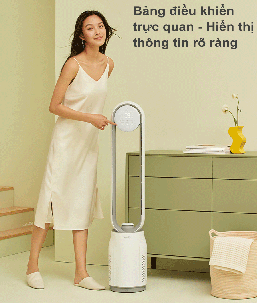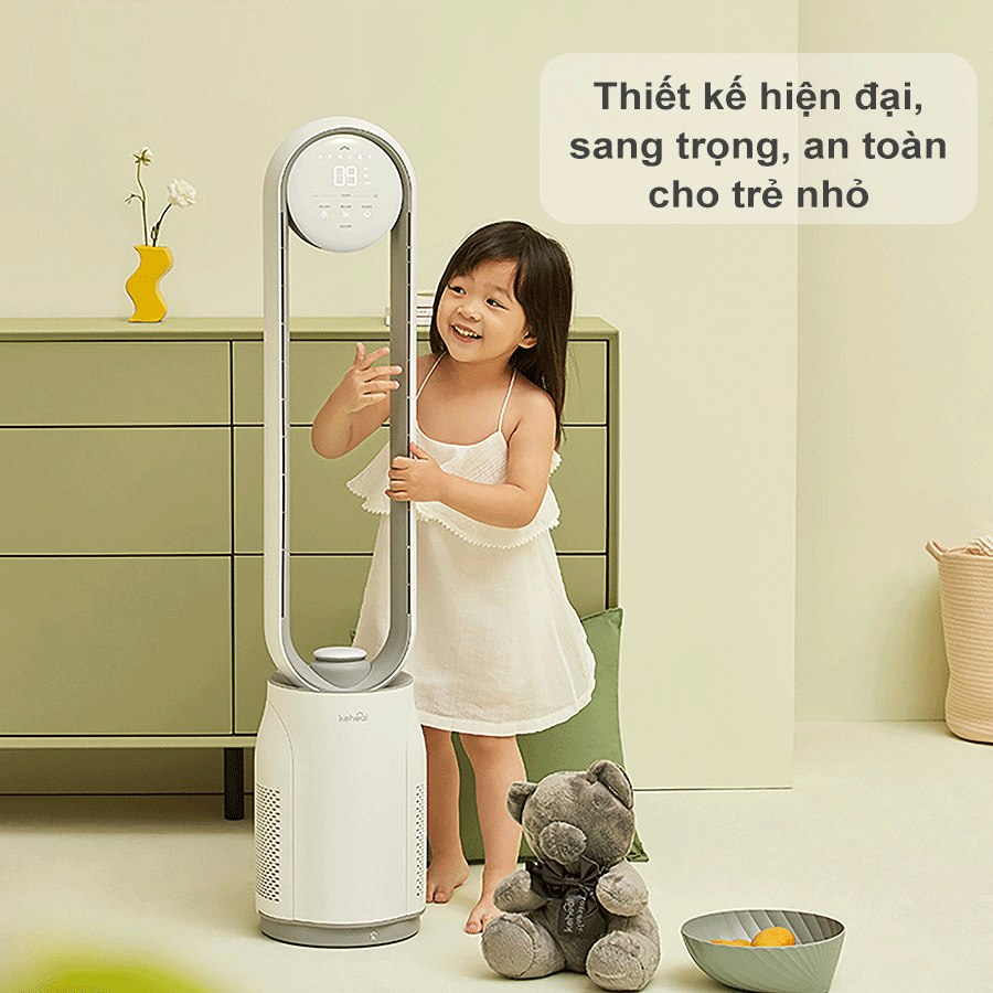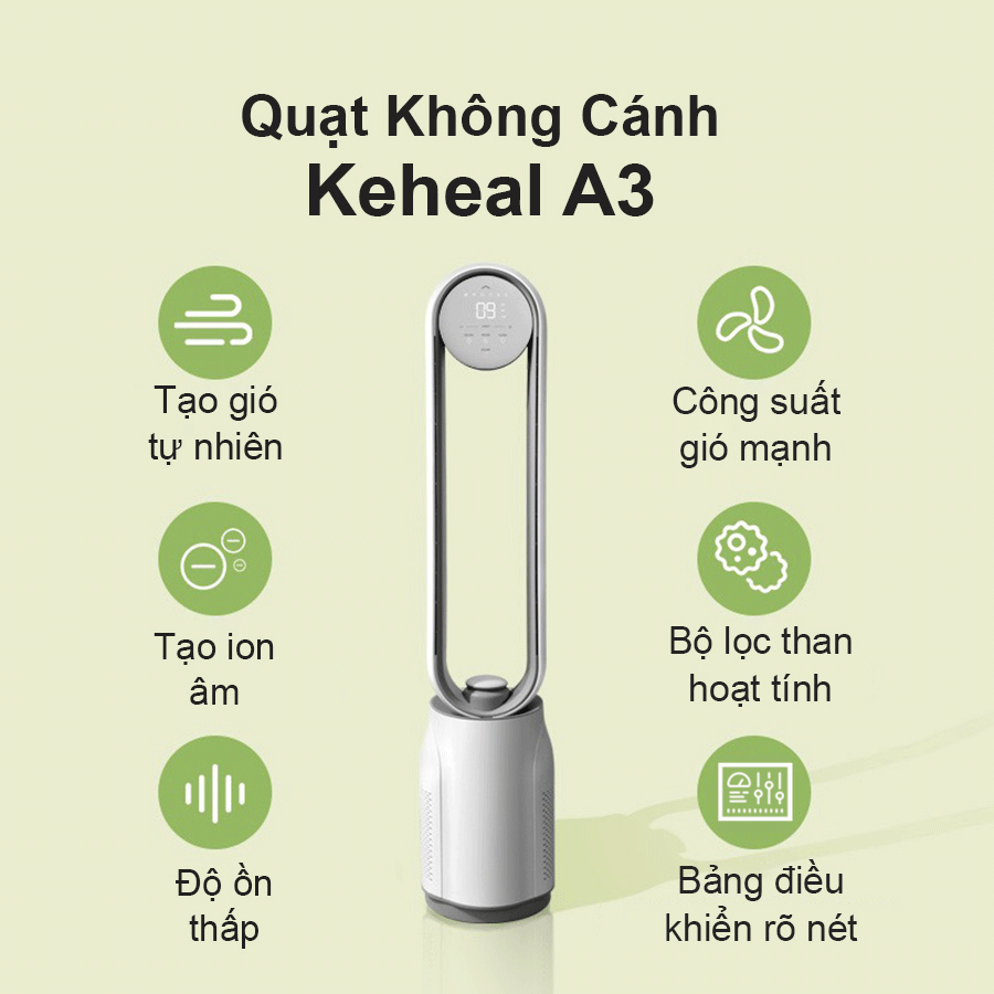 Không chỉ mang đến luồng gió mát, Keheal A3 còn cải thiện chất lượng không khí, tạo ra không gian trong lành, dễ chịu và bảo vệ sức khỏe người dùng. Với tính năng này, quạt không cánh Keheal A3 trở thành lựa chọn lý tưởng cho mọi không gian sống, giúp nâng cao trải nghiệm và sự thoải mái cho cả gia đình.