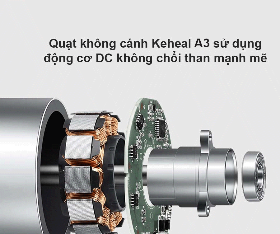 Quạt không cánh Keheal A3 được thiết kế với ống gió độc đáo, kết hợp công nghệ ACM™ (Air Centification & Multiplication) độc quyền, giúp tạo ra luồng không khí rộng lớn, êm dịu, mô phỏng gió tự nhiên. Với khả năng cung cấp đến 750L không khí mỗi giây, quạt nhanh chóng xua tan cái nóng oi ả, mang lại cảm giác dễ chịu.