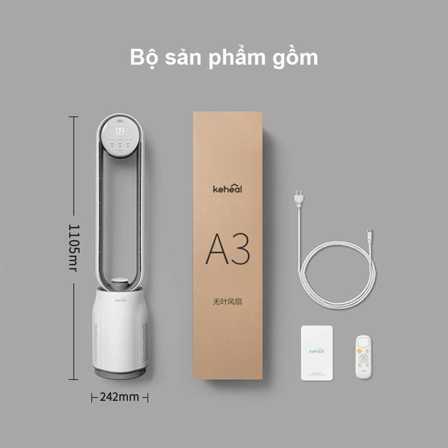 Quạt không cánh Keheal A3 – phiên bản thế hệ thứ 3 với nhiều cải tiến vượt trội, mang đến luồng gió mát tự nhiên và khả năng làm mát diện rộng. Sản phẩm tích hợp cơ chế thanh lọc không khí, giúp cải thiện chất lượng môi trường sống. Với thiết kế hiện đại, an toàn và vận hành êm ái, Keheal A3 là lựa chọn lý tưởng để mang lại không gian mát mẻ, dễ chịu cho gia đình bạn trong mùa hè này.