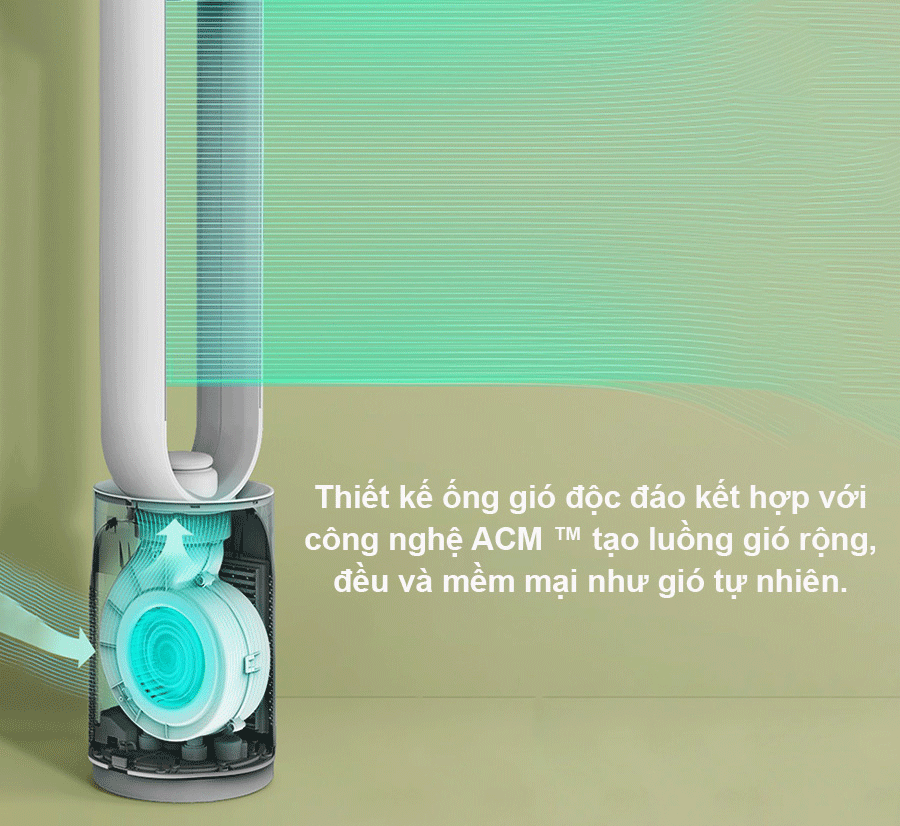 Làm mát diện rộng: Công nghệ ACM™ tạo luồng gió tự nhiên, phạm vi làm mát xa đến 10m, phù hợp cho không gian 30m², có thể kết hợp với máy điều hòa để lưu thông không khí tốt hơn.