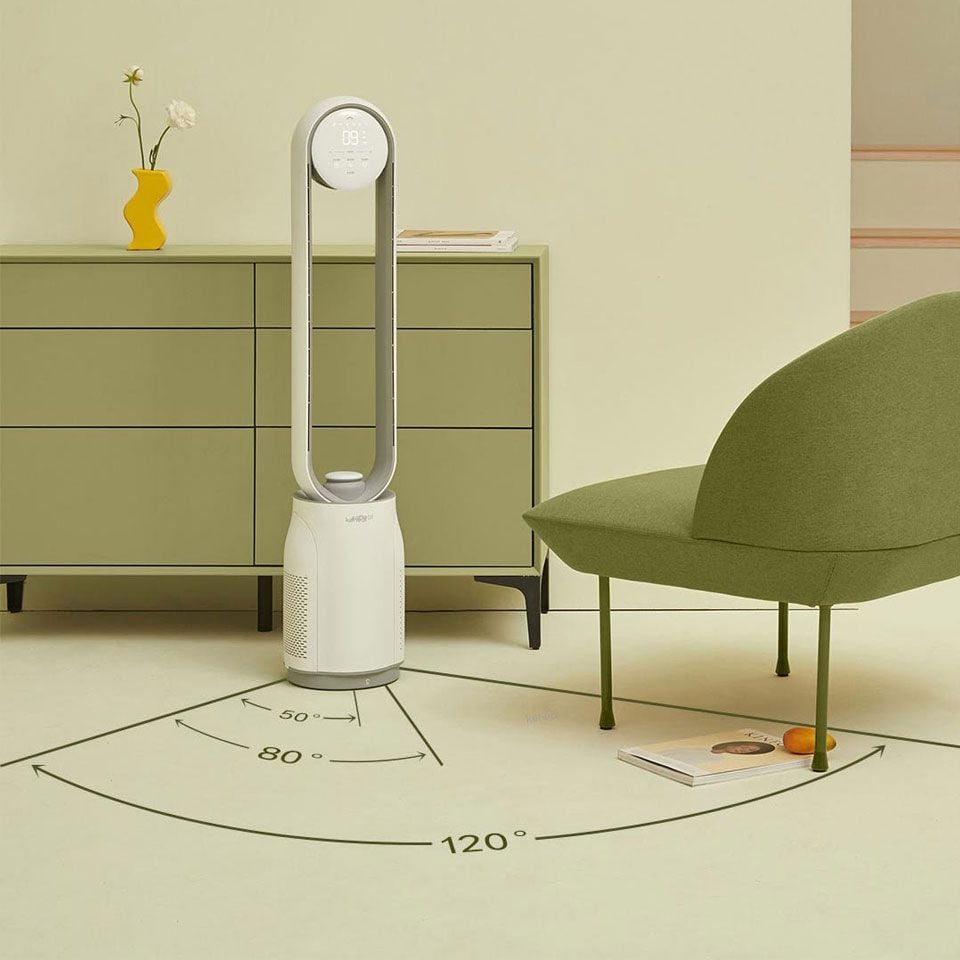 Sở hữu thiết kế hiện đại và khác biệt so với quạt truyền thống, quạt không cánh Keheal A3 mang đến khả năng làm mát diện rộng vô cùng hiệu quả. Với góc làm mát tối đa lên đến 120˚, quạt có thể nhanh chóng lan tỏa luồng gió mát khắp không gian phòng, mang lại sự thoải mái tức thì.
