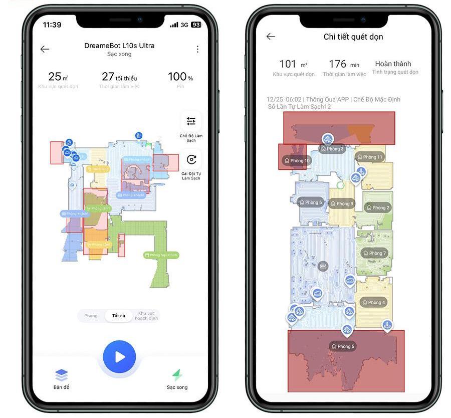 Giao diện tiếng Việt thân thiện và dễ sử dụng trên ứng dụng đi kèm với Dreame L10S Ultra SE giúp bạn dễ dàng tạo và lưu nhiều bản đồ khác nhau cho ngôi nhà của mình. Bạn có thể phân vùng khu vực dọn dẹp một cách chi tiết và đặt lịch làm sạch riêng biệt cho từng khu vực, giúp việc vệ sinh trở nên khoa học và hiệu quả hơn bao giờ hết.