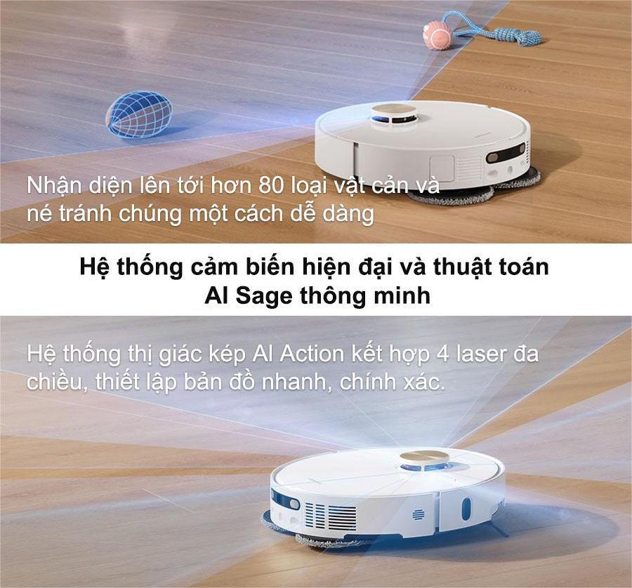 Cảm biến đa chiều & thuật toán AI Sage, nhận diện và tránh vật cản chính xác.