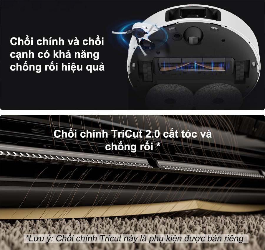 Tính năng này đặc biệt hữu ích với những gia đình có nuôi thú cưng hoặc mái tóc dài, giúp robot vận hành trơn tru và bền bỉ hơn.