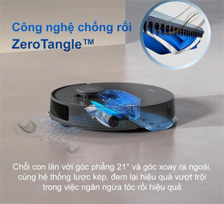 Được trang bị chổi con lăn với thiết kế góc phẳng 21° kết hợp cùng hệ thống lược kép tiên tiến, công nghệ ZeroTangle™ trên Robot hút bụi Ecovacs Deebot N20 Pro - Bản quốc tế mang đến khả năng ngăn chặn tóc và lông thú cưng bị cuốn rối một cách hiệu quả. Nhờ đó, robot duy trì được hiệu suất làm sạch tối ưu trong suốt quá trình hoạt động, tránh tình trạng tắc nghẽn hay giảm lực hút do tóc rối gây ra.