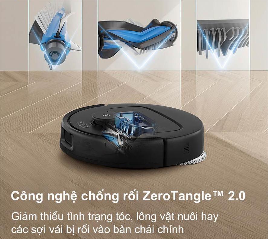 Sản phẩm được trang bị công nghệ chống rối ZeroTangle™ 2.0, giúp ngăn ngừa tình trạng lông tóc và bụi bẩn bị cuốn vào chổi quét, từ đó nâng cao hiệu suất làm sạch và giảm thiểu thời gian bảo trì. Với lực hút cực kỳ mạnh mẽ lên đến 10.000Pa, robot dễ dàng xử lý mọi loại bụi bẩn, mảnh vụn dù lớn hay nhỏ, đảm bảo không gian sống của bạn luôn sạch sẽ, thoáng mát.