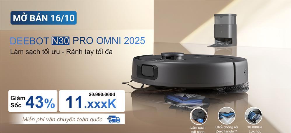Ecovacs Deebot N30 Pro Omni mang đến cuộc cách mạng trong việc chăm sóc nhà cửa với loạt công nghệ hiện đại như chống rối ZeroTangle™ 2.0, lực hút 10.000Pa mạnh mẽ, làm sạch cạnh tường <1mm cùng trạm sạc OMNI đa năng. Tất cả hội tụ trong một thiết bị nhỏ gọn, thông minh và tiện lợi – sẵn sàng trở thành "trợ lý dọn dẹp" đáng tin cậy cho mọi gia đình bận rộn.