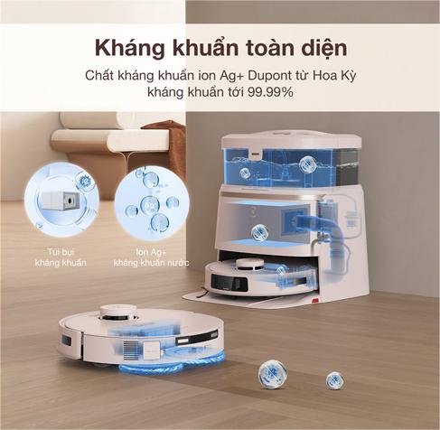 Ecovacs Deebot T30 Pro Omni – Bản Quốc có khả năng kháng khuẩn lên đến 99,99% nhờ ứng dụng ion Ag+ Dupont nhập khẩu từ Mỹ. Công nghệ này giúp bảo vệ sức khỏe cho toàn bộ thành viên trong gia đình, đặc biệt là đối với trẻ nhỏ và người lớn tuổi – những đối tượng cần được chăm sóc và bảo vệ kỹ lưỡng nhất.