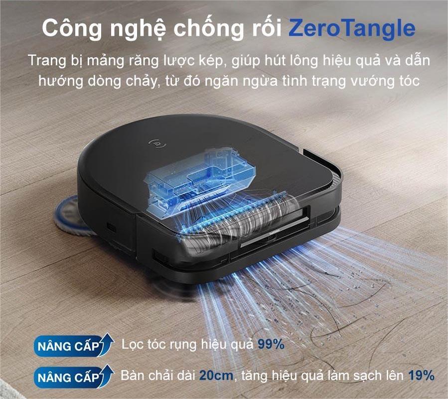 Nhờ vậy, robot Ecovacs Deebot X5 Pro Omni duy trì được lực hút mạnh mẽ, đảm bảo hiệu suất làm sạch luôn ở mức tối ưu. Đồng thời, công nghệ ZeroTangle còn giúp giảm đáng kể tần suất vệ sinh và bảo trì thiết bị, mang lại sự tiện lợi và trải nghiệm sử dụng lâu dài cho người dùng. Đây là một tính năng nổi bật khiến Ecovacs Deebot X5 Pro Omni – Bản Quốc Tế trở thành lựa chọn hàng đầu trong phân khúc robot hút bụi lau nhà cao cấp.