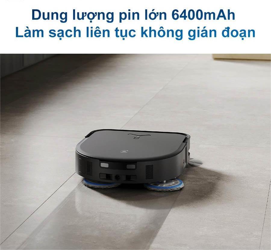 Dung lượng pin lớn 6400mAh: Cho phép robot hoạt động liên tục lên đến 164 phút, bao phủ diện tích lên đến 145m².