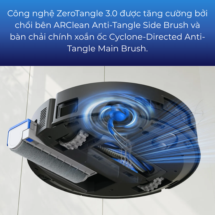 • có Bàn chải bên chống rối ARClean và Bàn chải chính chống rối hướng lốc xoáy