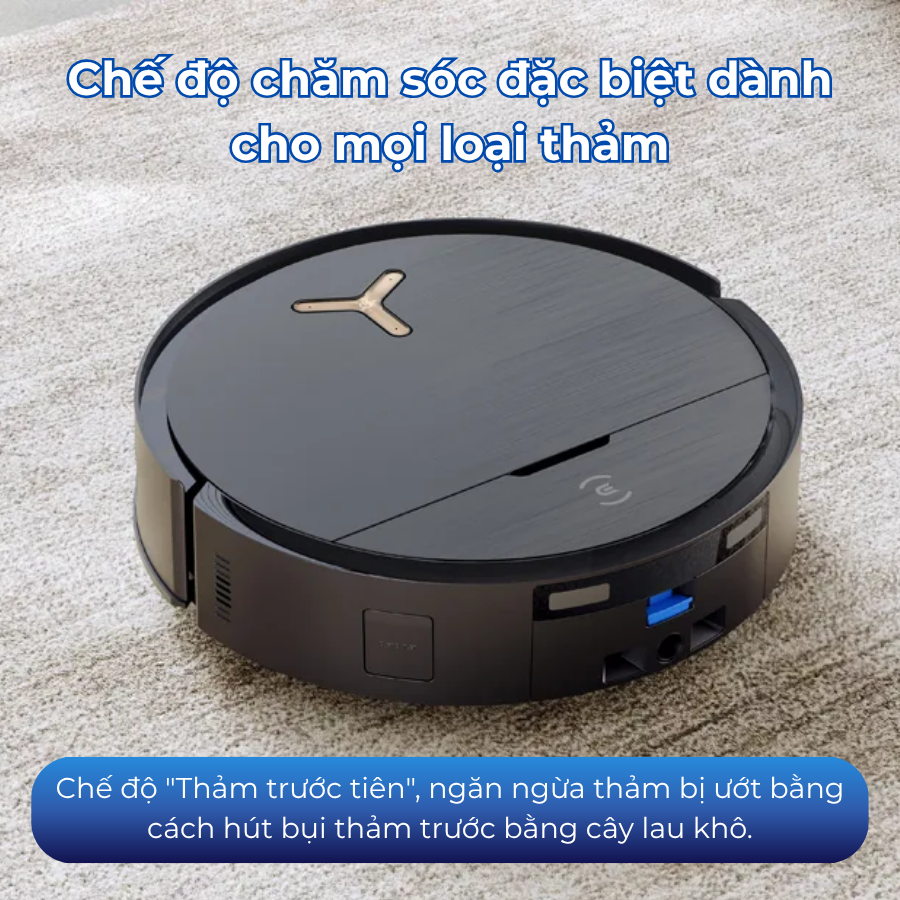 Ecovacs X9 Pro Omni gây ấn tượng trong việc chăm sóc thảm với các chức năng: Chế độ “Thảm trước tiên”, ngăn ngừa thảm bị ướt bằng cách hút bụi thảm trước bằng cây lau khô. Cảm biến cạnh TruEdge 3D đảm bảo điều hướng cạnh chính xác, trong khi nhận dạng thảm thông minh tự động kích hoạt các chế độ tối ưu, “Chỉ hút bụi”, “Không vào”, “Chỉ đi qua” và “Như trên sàn”, cung cấp các chiến lược vệ sinh cấp độ chuyên nghiệp cho các loại thảm khác nhau.