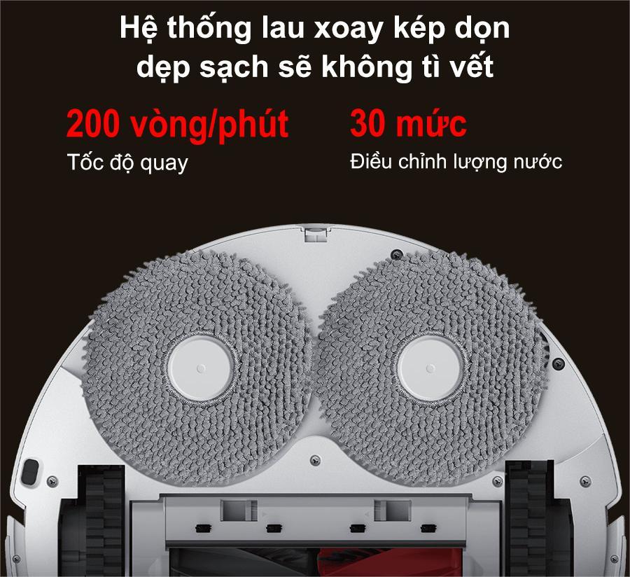 Với hệ thống lau xoay kép, robot hút bụi Roborock Q Revo Curv giúp xử lý hiệu quả các vết bẩn cứng đầu. Hai miếng lau xoay với tốc độ lên đến 200 vòng/phút, điều chỉnh được 30 mức nước, giúp bạn cá nhân hóa việc lau sàn theo từng khu vực và chất liệu.