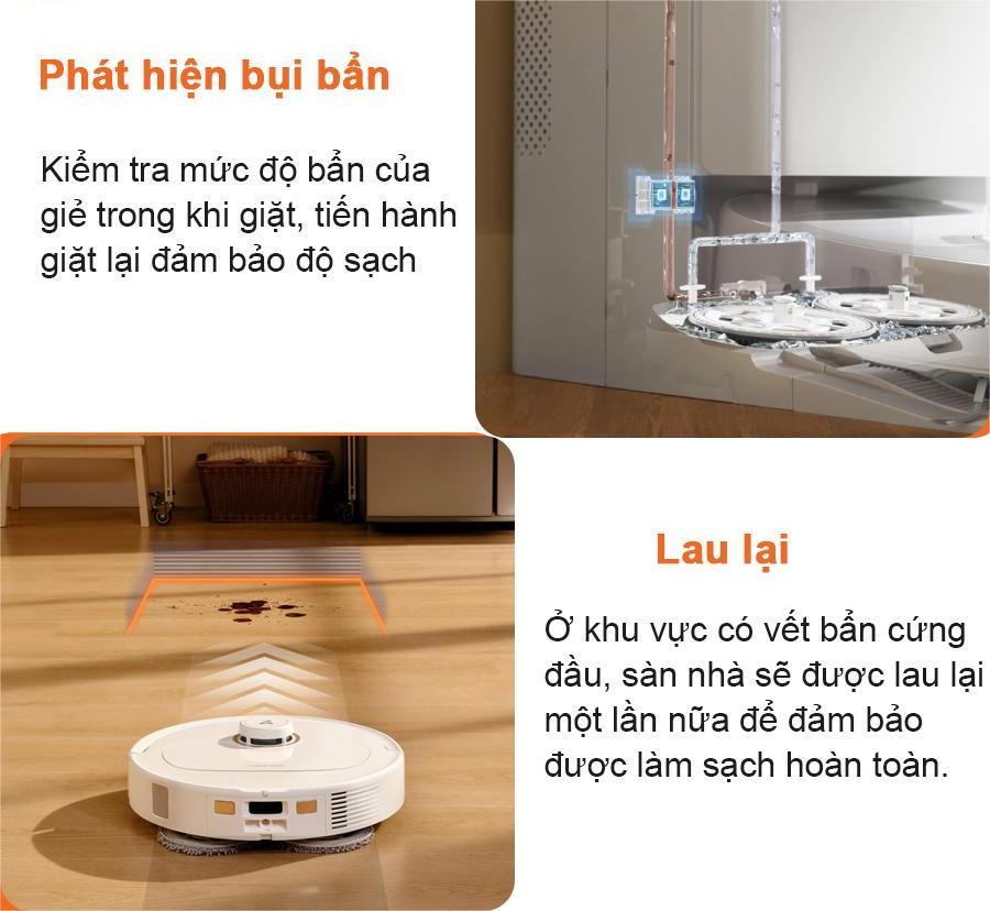 Robot hút bụi Roborock Q Revo MaxV – Bản Quốc Tế được trang bị hệ thống cảm biến hiện đại, có khả năng đánh giá chính xác mức độ bẩn của sàn nhà trong quá trình hoạt động. Dựa trên dữ liệu thu thập được, robot hút bụi Roborock Q Revo MaxV – Bản Quốc Tế sẽ tự động giặt khăn lau khi cần thiết và quay lại làm sạch lần nữa ở những khu vực còn bẩn, đảm bảo toàn bộ mặt sàn luôn đạt độ sạch tối ưu. Tính năng này không chỉ nâng cao hiệu quả vệ sinh, mà còn mang đến sự chăm sóc tỉ mỉ, thông minh cho từng khu vực trong ngôi nhà bạn.