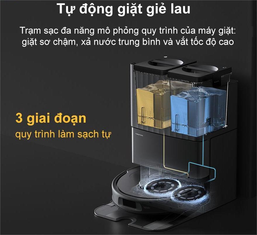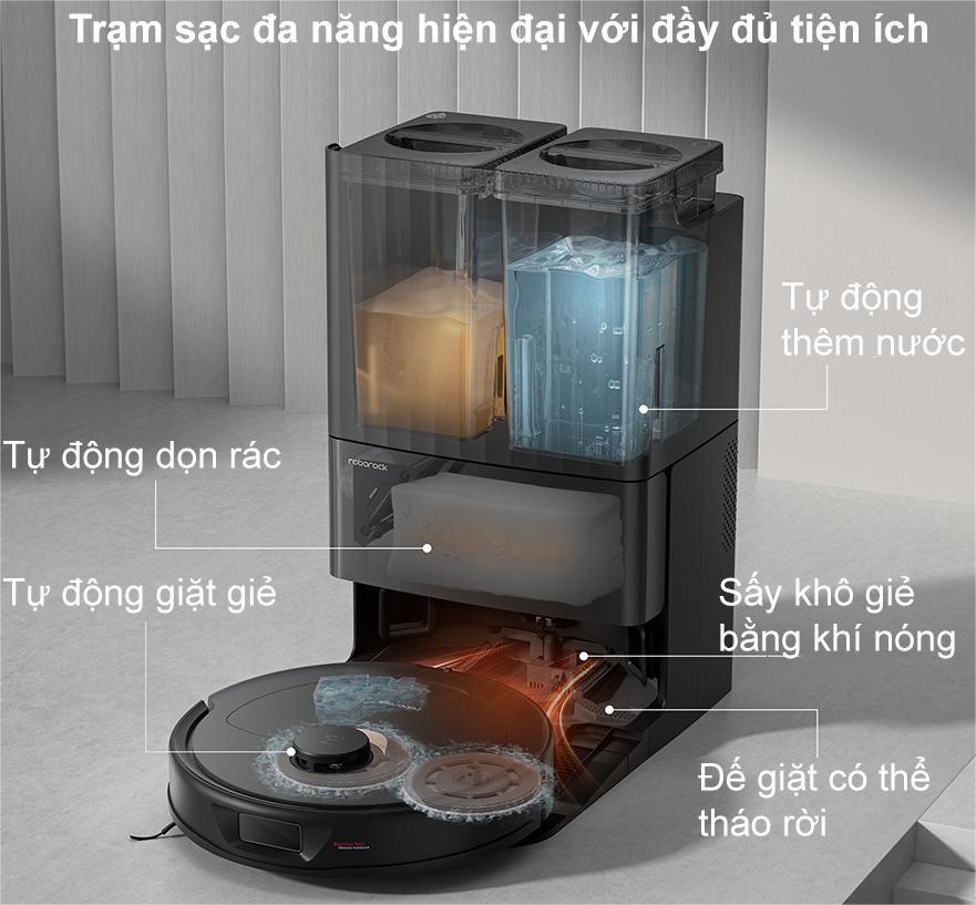Điểm đặc biệt của Robot hút bụi Roborock Q Revo S – Bản Quốc Tế còn nằm ở trạm sạc đa năng thông minh, tích hợp chức năng giặt và sấy khăn lau tự động bằng nước nóng, đảm bảo khăn lau luôn sạch sẽ, khô ráo và sẵn sàng cho những lần làm sạch tiếp theo. Công nghệ này không chỉ giúp tiết kiệm thời gian và công sức cho người dùng mà còn nâng cao khả năng diệt khuẩn, giữ cho không gian sống luôn sạch sẽ và an toàn.